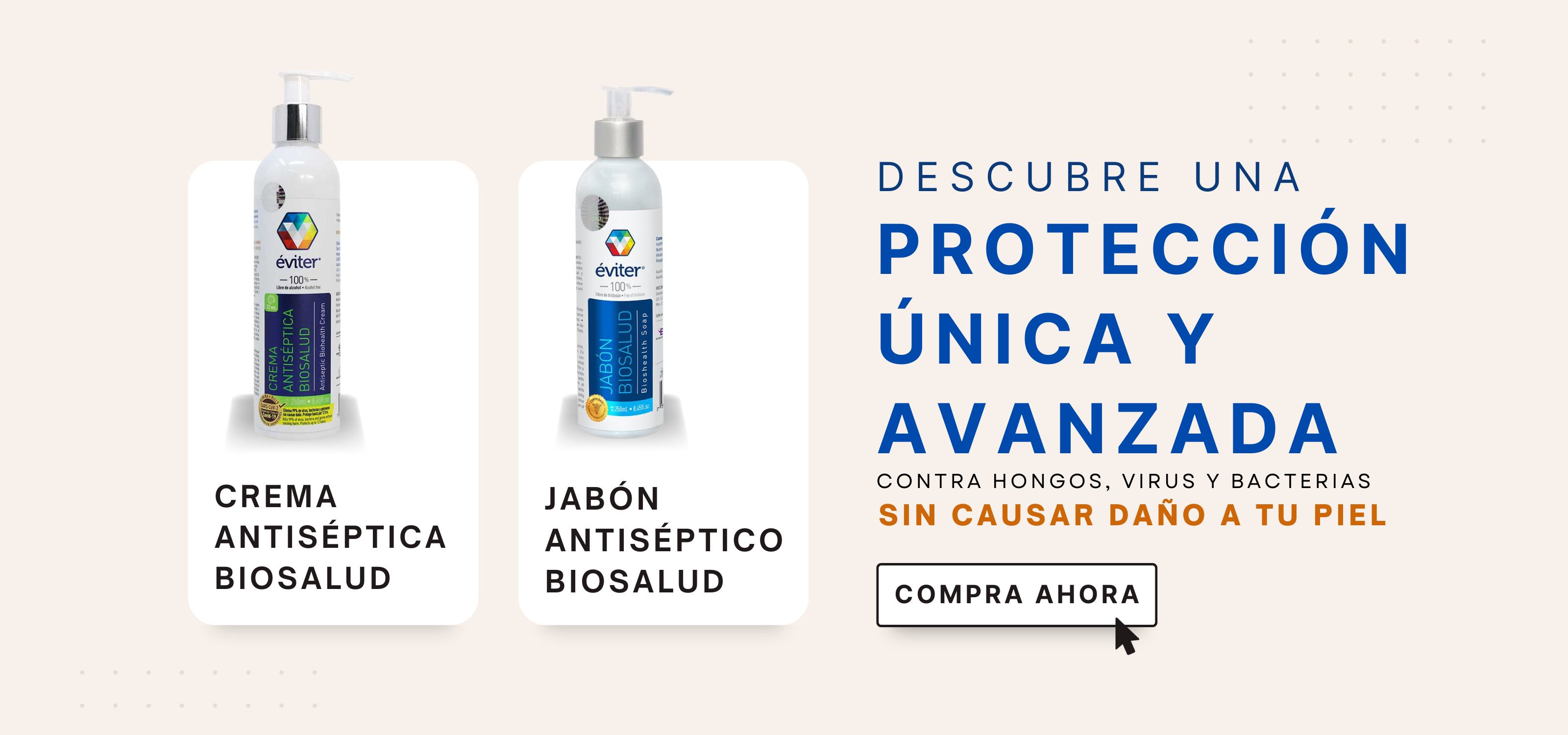 La crema y el jabón antiséptico Biosalud de Éviter ofrecen una poderosa defensa antimicrobiana, mientras nutren y protegen tu piel. Ya sea para cuidar heridas, protegerte de infecciones cutáneas, o mantener una piel saludable, confía en Éviter para tu bienestar y cuidado personal.